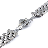 Le bracelet montre en métal avec mailles liées fines est réglable au niveau des maillons pour s'adapter à la bonne longueur (voir aide en dessous). La finition du bracelet est satinée. Ce type de bracelet peut se polir pour avoir un rendu satiné ou brossé. Adaptable à toutes les marques de montre disposant d'un bracelet montre cuir, d'un bracelet montre métal ou d'un bracelet montre caoutchouc d'origine à anses droites. Le bracelet montre acier est disponible immédiatement et existe en différentes tailles. Ce bracelet est adapté au montres Breitling.