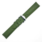 Le bracelet montre skinskan vert kaki sans couture est disponible immédiatement et existe en différentes largeurs. Les longueurs sont standards (M) : 115mm pour la grande partie et 75mm pour la petite partie. Le bracelet montre a une épaisseur de 5.5mm au plus haut et 2.8mm au plus bas.