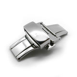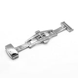 La plupart des vendeurs de bracelet de montre ne proposent pas les boucles déployantes à la vente. Antenen propose des boucles ardillons et déployantes en différentes formes et couleurs. La boucle déployante s'ouvre en trois parties : d'où l'appelation boucle déployante papillon. Toutes les boucles ardillons d'un bracelet de montre peuvent être remplacées par une boucle déployante. Note : Il ne faut pas que le bracelet soit trop épais. Épaisseur maximum : 2,5mm au niveau de la pointe de la partie la plus longue du bracelet. La boucle déployante papillon évite l'usure préméditée du cuir. Une fois la boucle attachée au 2 côtés du bracelet de montre, la manipulation pour la portée s'effectue exclusivement par la boucle. Facile à manipuler et monter sur le bracelet.