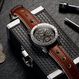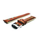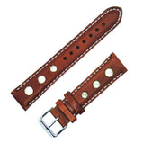 Bracelet montre rallye trous sports en veau brun clair avec coutures et tranches blanches.