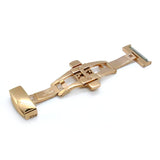 La plupart des vendeurs de bracelet de montre ne proposent pas les boucles déployantes à la vente. Antenen propose des boucles ardillons et déployantes en différentes formes et couleurs. La boucle déployante s'ouvre en trois parties : d'où l'appelation boucle déployante papillon. Toutes les boucles ardillons d'un bracelet de montre peuvent être remplacées par une boucle déployante. Note : Il ne faut pas que le bracelet soit trop épais. Épaisseur maximum : 2,5mm au niveau de la pointe de la partie la plus longue du bracelet. La boucle déployante papillon évite l'usure préméditée du cuir. Une fois la boucle attachée au 2 côtés du bracelet de montre, la manipulation pour la portée s'effectue exclusivement par la boucle. Facile à manipuler et monter sur le bracelet. La boucle déployante couleur or rose est recommandée pour les montres avec un boitier or rose ou dorée.